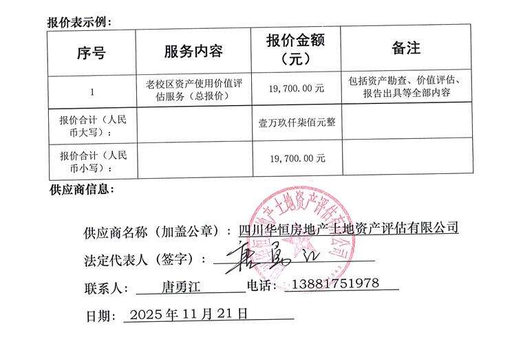 7 | 四川华恒房地产土地资产评估有限公司 | 19,700.00 | 否 | 有效报价 |