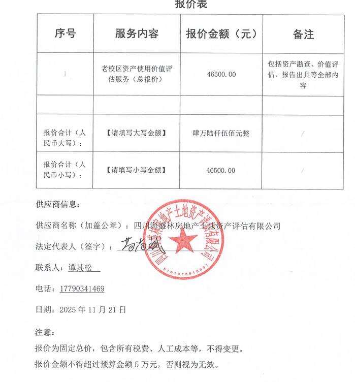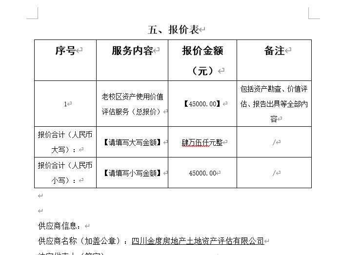 6 | 四川金度房地产土地资产评估有限公司 | 45,000.00 | 否 | 有效报价 |