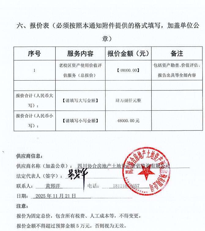 3 | 四川协合房地产土地资产评估咨询有限公司 | 48,000.00 | 否 | 有效报价 |