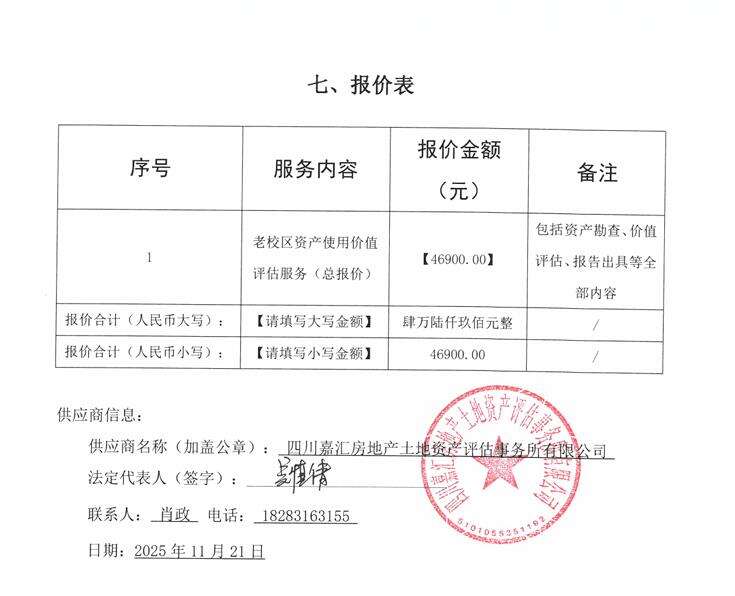 1 | 四川嘉汇房地产土地资产评估事务所有限公司 | 46,900.00 | 否 | 有效报价 |