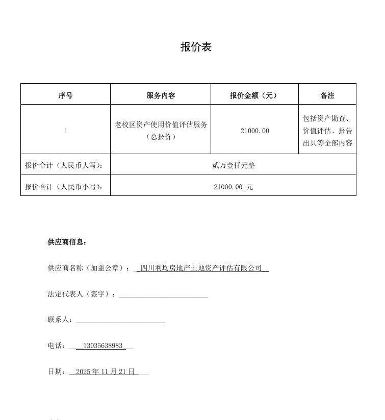 5 | 四川利均房地产土地资产评估有限公司 | 21,000.00 | 否 | 有效报价 |